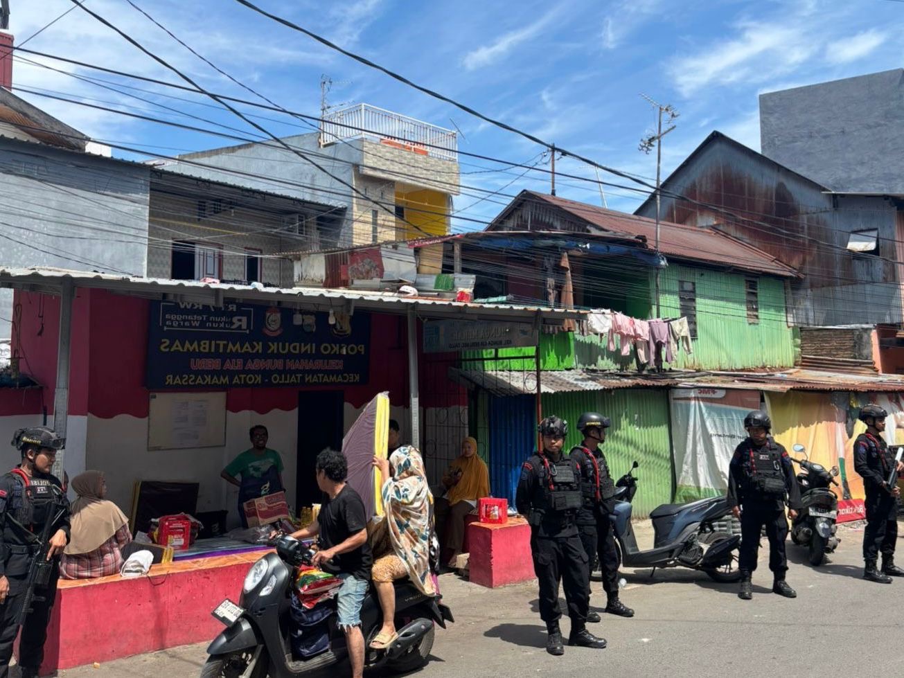 Palopo – Personel Batalyon D Pelopor Satuan Brimob Polda Sulsel yang bertugas di Pos Pengamanan Mancani melaksanakan kegiatan patroli dan sambang warga di wilayah Linkungan Uri dan Batu, Kelurahan Mancani, Kecamatan Telluwanua, Kota Palopo, Rabu (08/04/2026).