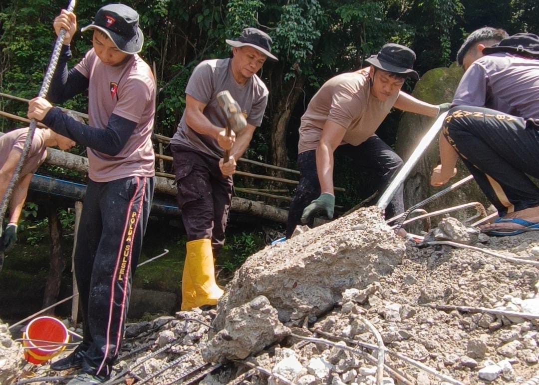 Barru — Bentuk nyata sinergitas kembali ditunjukkan oleh Batalyon B Pelopor Satuan Brimob Polda Sulawesi Selatan bersama Polres Barru melalui kegiatan pembangunan jembatan penghubung di wilayah pedesaan Kabupaten Barru, Kamis (08/01/2026)