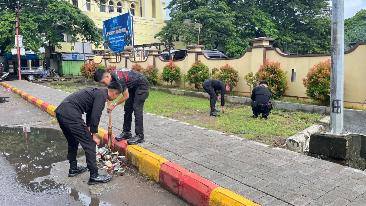 Kerja Bakti Personil Detasemen Gegana Dimusim Hujan