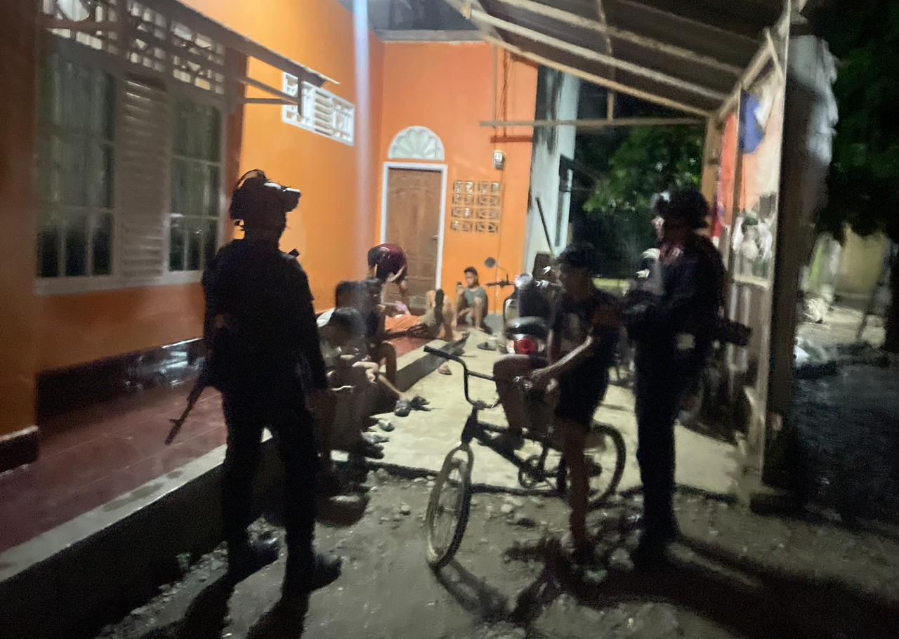 Personel Pos Pengamanan Mancani Batalyon D Pelopor Satuan Brimob Polda Sulawesi Selatan melaksanakan kegiatan Patroli Malam dan Sambang Warga pada Senin, 12 Januari 2026, pukul 21.00 WITA.
