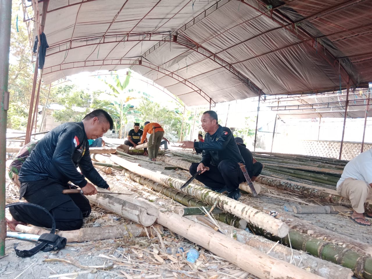 Personel Batalyon D Pelopor Satuan Brimob Polda Sulawesi Selatan melaksanakan kegiatan hari ke-3 pembuatan Balasuji dalam rangka Pengukuhan Kemakolean Baebunta, yang bertempat di Desa Baebunta, Kecamatan Baebunta, Kabupaten Luwu Utara.
