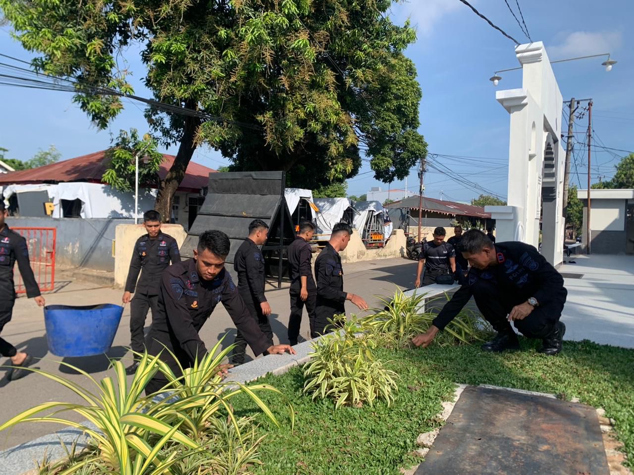 Dengan penuh semangat, personel Brimob memastikan lingkungan masjid tetap bersih, rapi, dan nyaman bagi masyarakat yang melaksanakan ibadah sehari-hari.